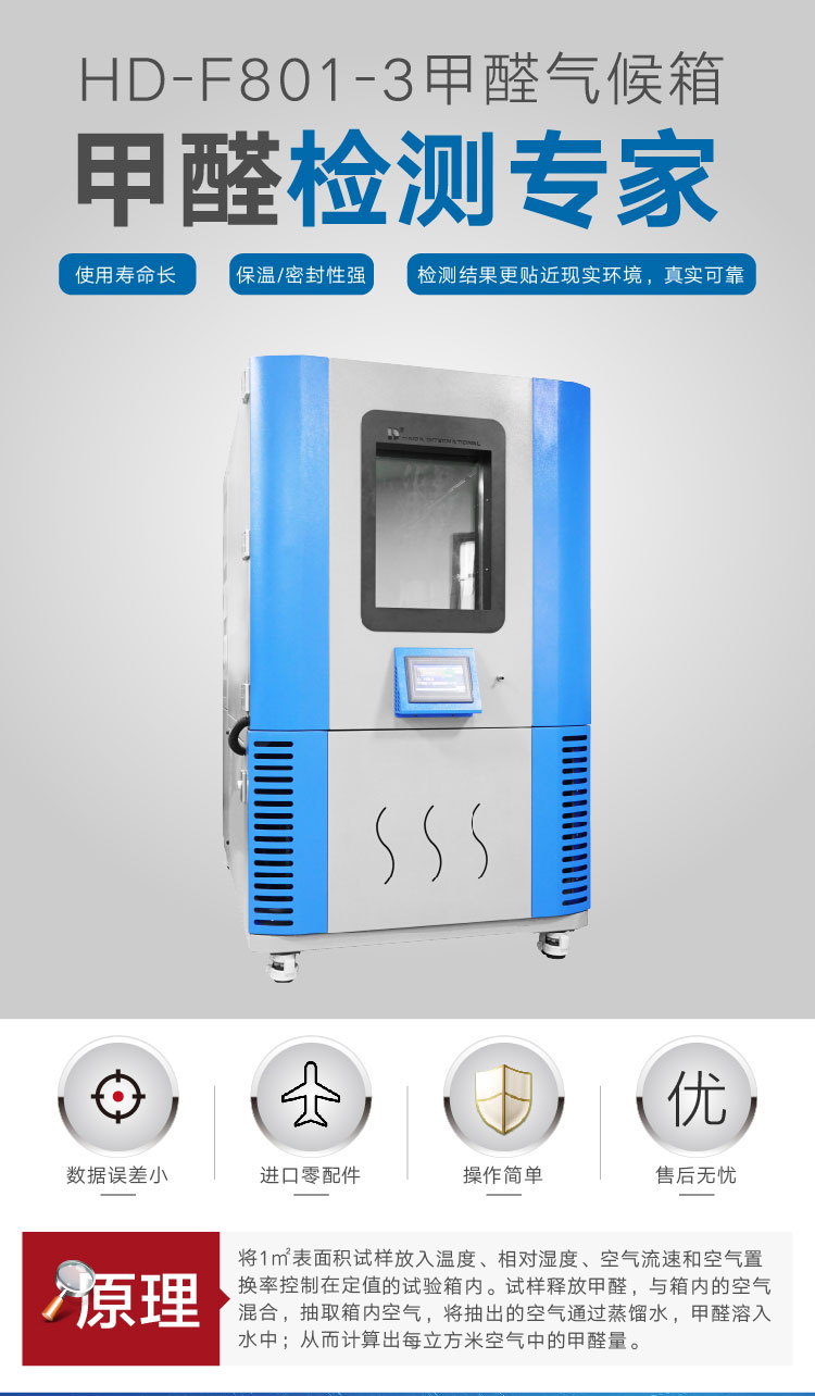 甲醛試驗(yàn)箱(1個(gè)立方)適用于各種人造板、復(fù)合木質(zhì)地板以及地毯、地毯襯墊及地毯膠粘劑等室內(nèi)裝修材料甲醛釋放量的測(cè)定、木材或人造板的恒溫、恒濕平衡處理,也可用于其它建材中揮發(fā)性有害氣體的檢測(cè)。