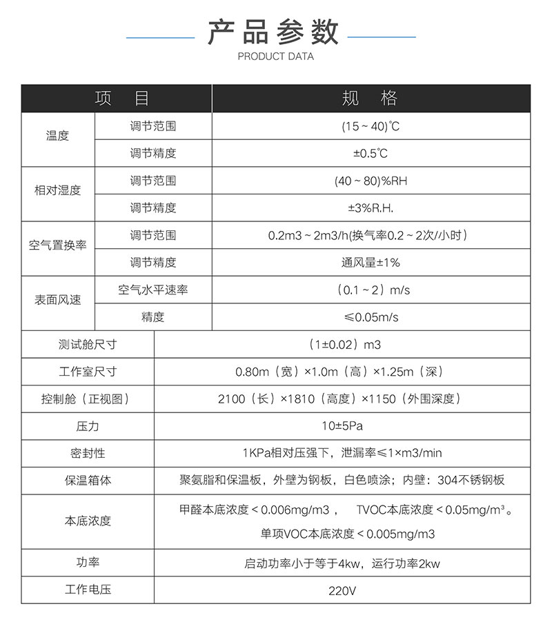 2.1.9工作室風速:0.1~0.3m/s(風速可調)