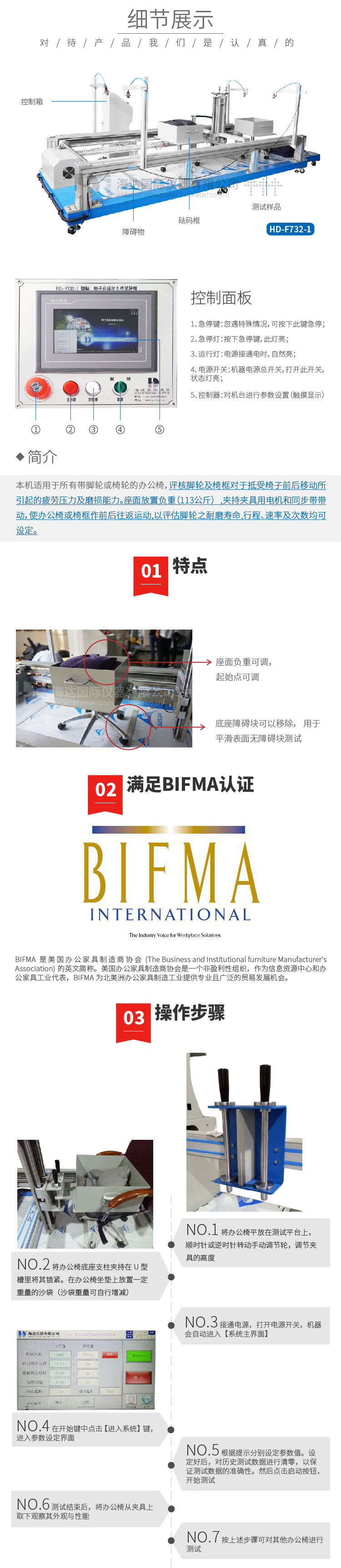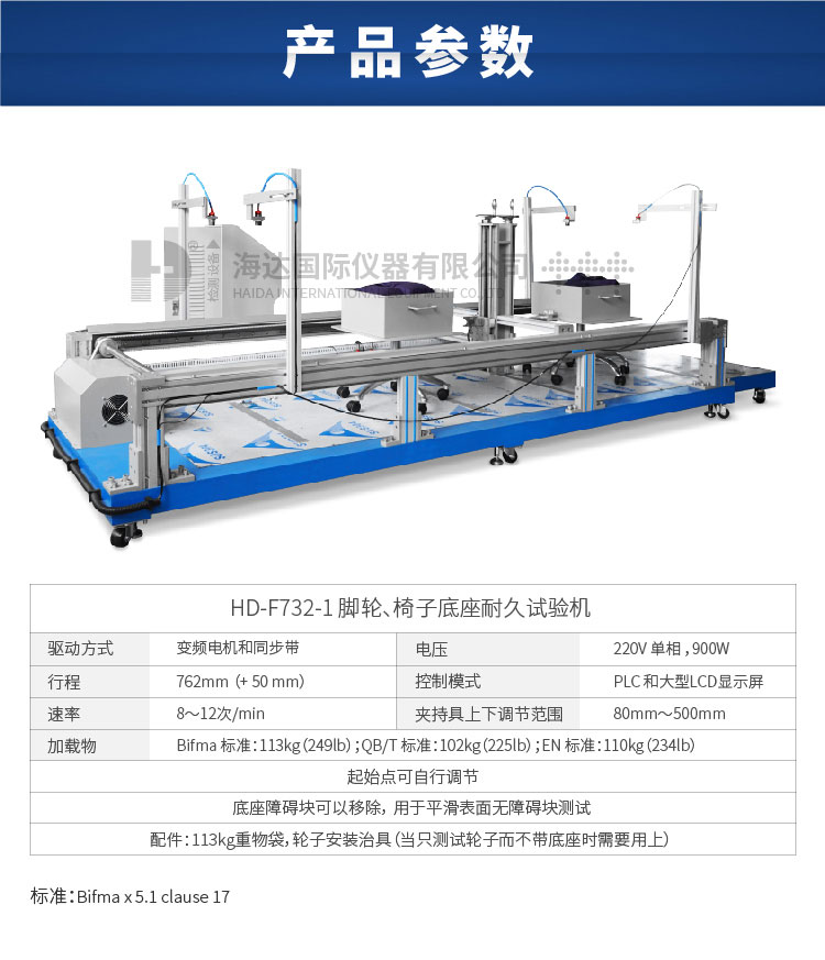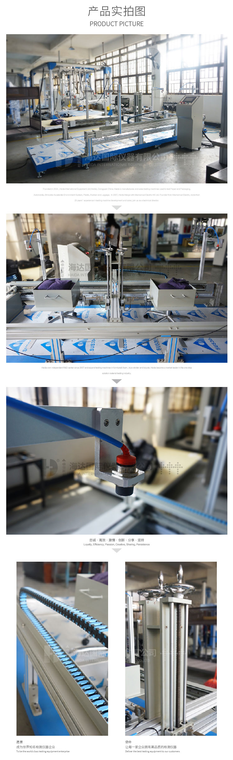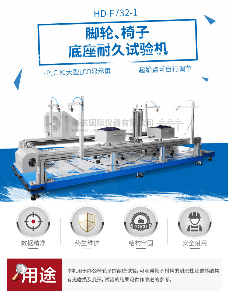 辦公椅輪子耐磨試驗(yàn)儀適用于所有底座配備萬向輪的椅子。用于評估辦公椅腳輪在負(fù)載狀態(tài)下移動的耐久能力。分有障礙和無障礙兩種測試方式,有障礙測試指辦公椅座面放置負(fù)荷,施力循環(huán)裝置,作左右往復(fù)推拉動作,行程及時(shí)間、次數(shù)均可設(shè)定。